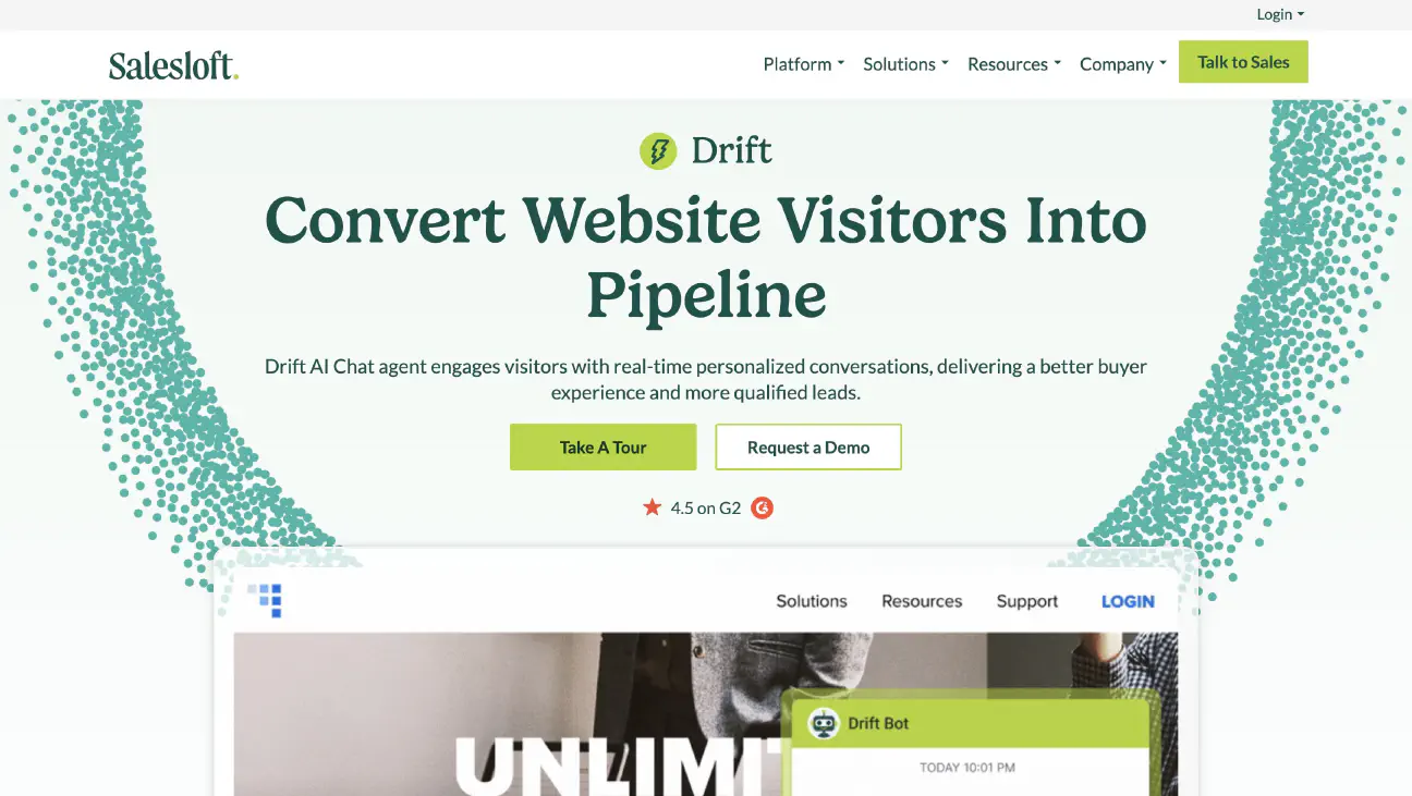 Drift was one of the first companies to push conversational AI into the B2B sales motion, and it’s still one of the best if your priority is getting hot leads in front of reps fast. Its AI chat tools are designed to qualify visitors in real-time, personalize outreach based on company profile or behavior, and route them instantly to a meeting or rep.